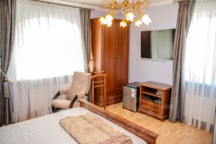 Дом построен из экологически чистых материалов, сделан качественный ремонт. Достаточно пространства для комфортного проживания большой семьи, а также для приема гостей. На первом этаже просторная кухня + гостинная с камином, гостевая комната. На втором этаже расположены 5 изолированных комнат и 4 санузла. Третий этаж - 3 изолированные комнаты и санузел. Также имеется домик для персонала на 4 комнаты и беседка. Дом газифицирован, электричество 25 кВт, водопровод, установлен стабилизатор напряжения + хозблок. Имеется парковочное место на 2 автомобиля.