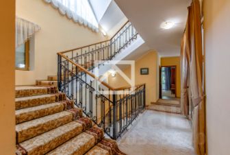 Дом разделён на две части с двумя автономными входами и внутренним проходом, что позволяет использовать его как единое целое или как два независимых жилых пространства. Внушительная высота потолков первого этажа — 5,5 метра, создает ощущение простора и лёгкости.