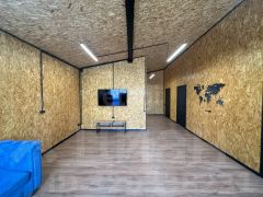 Опенспейс с местом под кухню, большой прихожей и гостиной с выходом на террасу, изолированная спальня с выходом на террасу, отдельный кабинет с окном и видом на горы, совмещенный санузел,