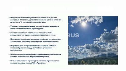 Продается привлекательный участок ИЖС 25 соток с панорамным видом и круглогодичным горным ручьем!