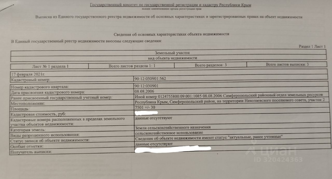 Кадастровый номер участка 90:12:030901:*** указал продавец
