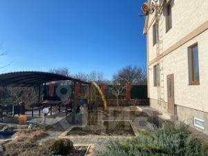 Весь дом огорожен. Есть двое ворот с автоматическим распашным механизмом. Одни ворота открываются во двор, другие под навес, где можно свободно припарковать несколько машин. Участок 25 соток, есть большая крытая зона для барбекю со всем необходимым оборудованием (мангал, большой казан с печью, тандыр), веранда с обеденным столом, лавочками и садовая качеля. Есть летний душ. На заднем дворе располагается сад в стиле четырех времен года: ели, туи, можжевельники, барбарисы, стелющиеся хвойные растения в сочетании с плодовыми деревьями и кустарниками. Также, имеется декоративный пруд с лилиями и каменным водопадом.