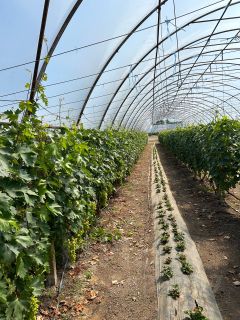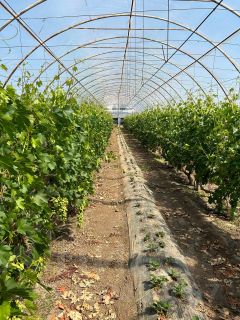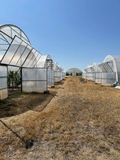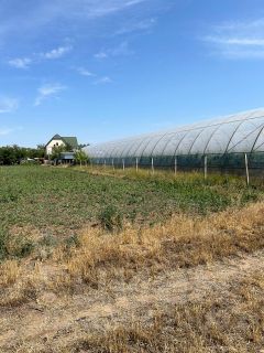 Вместе с домом прилагается участок площадью 1,75 гектара, в шаговой доступности от дома. На котором располагается 15 больших теплиц (ширина - 10 м, длина - 50 м, высота - 4,2 м). В теплицах посажен крупный столовый виноград ("Дубовский розовый", "Преображение"). Кусты взрослые, 10-летние, полноценно плодоносящие. Между виноградом посажена клубника. Все теплицы оборудованы автоматической системой полива. Есть две глубинные скважины (70 м). Имеется вся техника для работы. Все теплицы прилегают к дому.