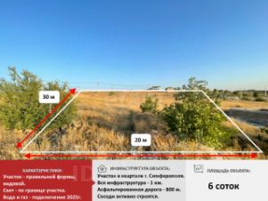 Участок, ИЖС, 6 соток,на Петровских высотах на ул.Валентина Гаршина, в г. Симферополь!