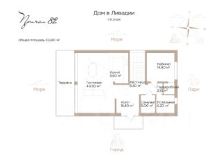 * 2 этаж: 2 спальни с гардеробами и выходом на террасу с видом на море, два санузла и детская.