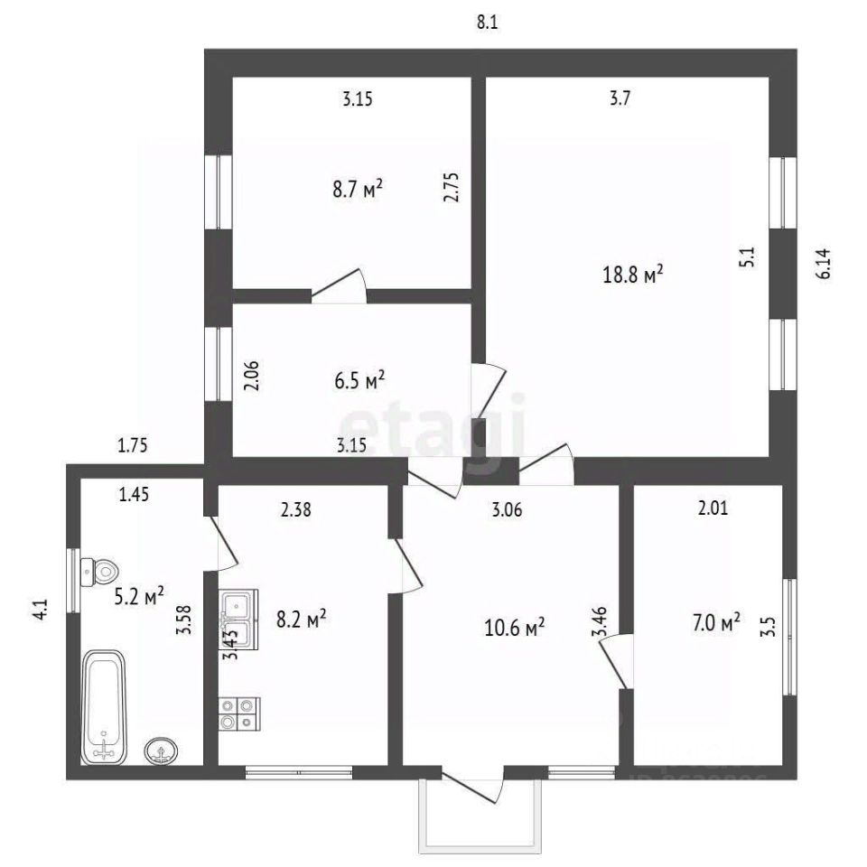 В доме три жилые комнаты, кухня, совмещённый санузел, установлены деревянные окна, отопление газовое (котёл), обогрев воды - газовая колонка. Дом нуждается в ремонте.