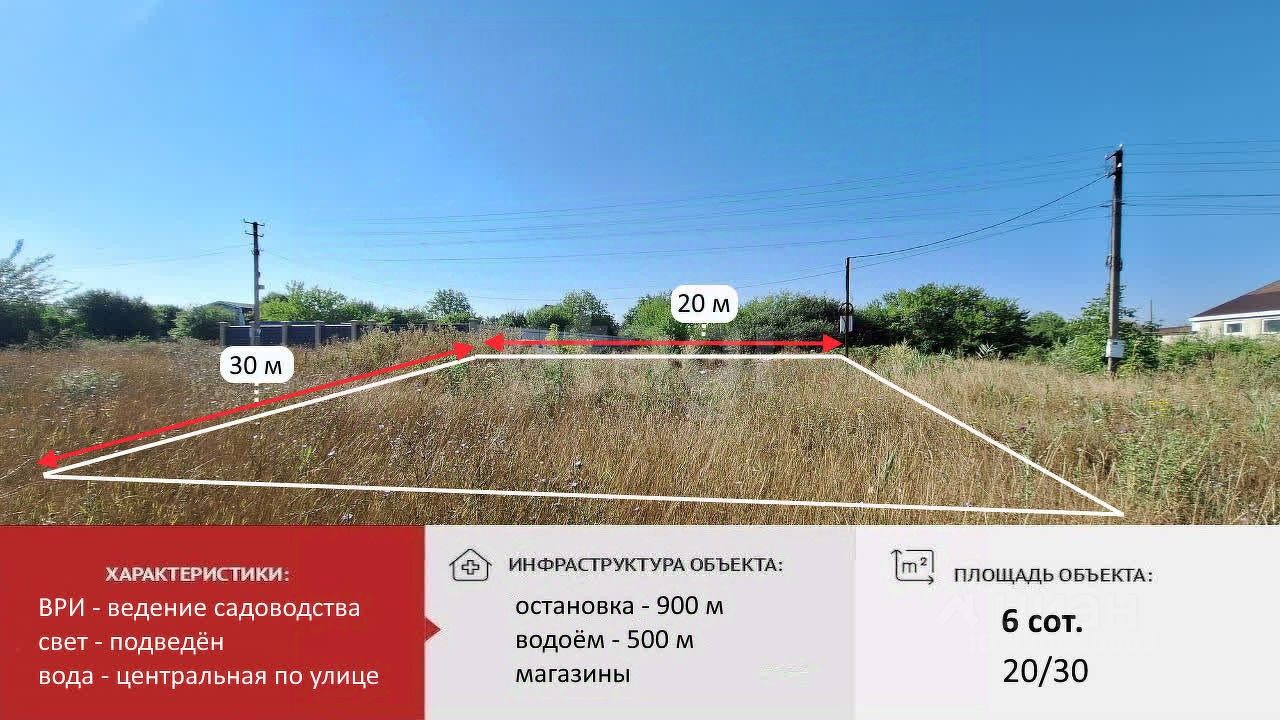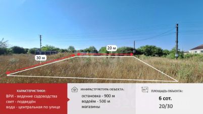 Участок имеет правильную прямоугольную форму с размерами 20 на 30 метров, что обеспечивает удобство планировки и рациональное использование пространства.