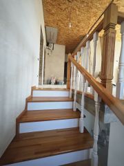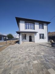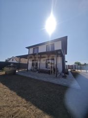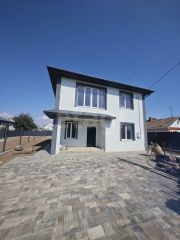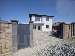 Двухэтажный дом 2024 года постройки площадью 185,6 кв. м расположен в селе Михайловка Сакского района Республики Крым на участке 6 соток. Территория огорожена забором по периметру, двор вымощен тротуарной плиткой, установлены откатные ворота с дистанционным управлением. На первом этаже расположены просторная кухня-гостиная, спальня, санузел и котельная. На второй этаж ведет монолитная лестница с деревянной обшивкой, где находятся три спальни и еще один санузел. Дополнительным преимуществом является большая терраса. Крыша покрыта мягкой кровлей с утеплением минеральной ватой, фасад также утеплен и отделан караедом.