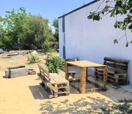 ,через участок проходит поливная вода ,имеется небольшая мангальная зона ,во дворе много плодоносных деревьев,так же имеется небольшая бытовка