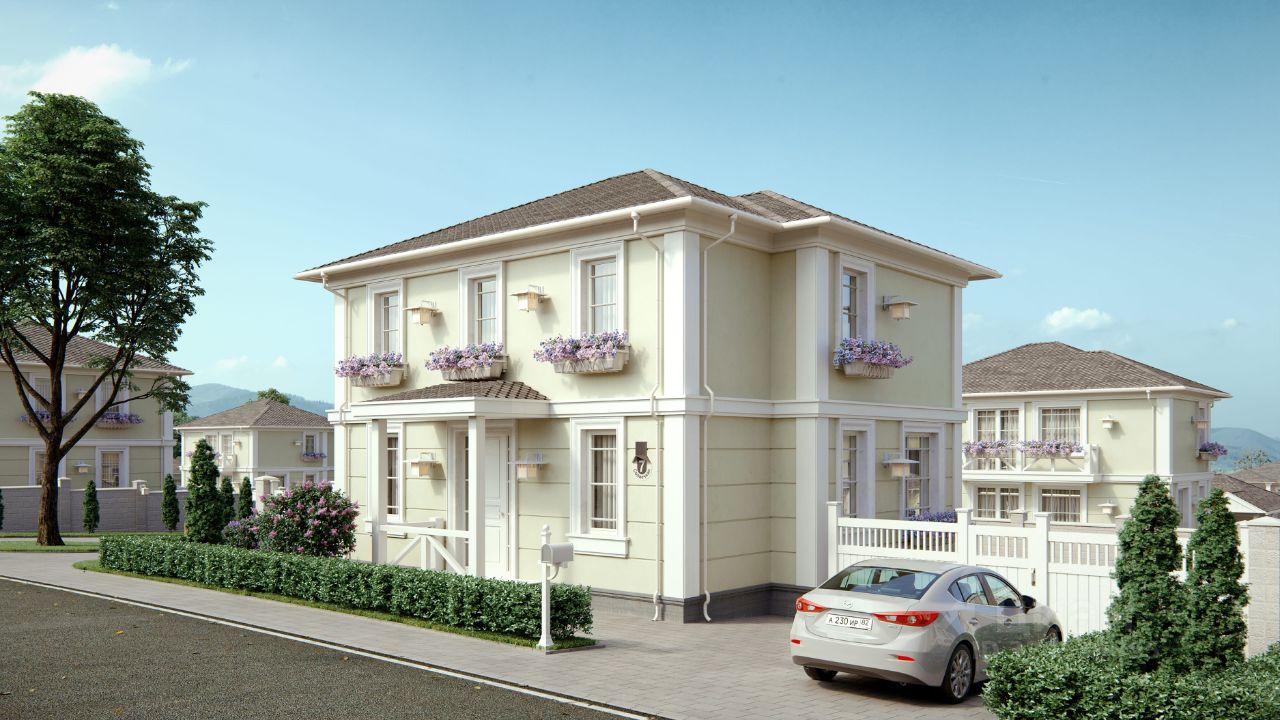 — Фасад: фасадная декоративная штукатурка, декоративные элементы из пенополистирола, усиленная теплоизоляция из минеральной ваты 100 мм, теплая архитектурная подсветка;