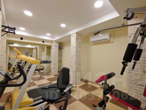 Спортивный зал с тренажерами и зеркальной стеной
