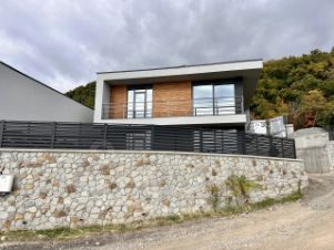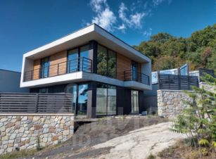 Двухэтажный дом общей площадью 170 кв.м., дом новой постройки в современном стиле хай-тек с большим количеством природного освещения через панорамные окна из тёплого алюминия.
