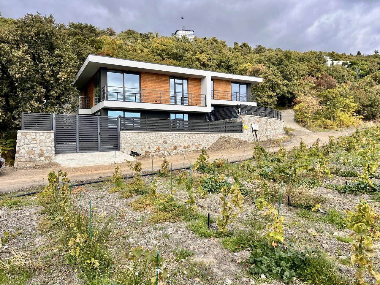 Дом расположен в посёлке Отрадное, в пошаговой доступности от моря и инфраструктуры, перед домом раскинулся виноградник переходящий в морскую гладь, виды на море не перекрываемые из всех окон дома видно виноградники, море и все побережье от Отрадного до Ласточкиного гнезда в Гаспре.