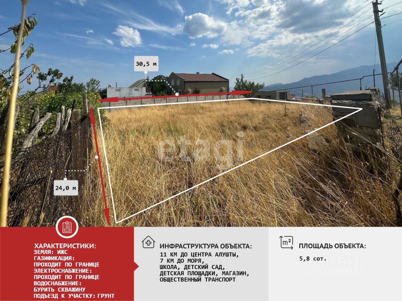 Предлагается к продаже земельный участок 5,81 сотки в c.Лучистое.