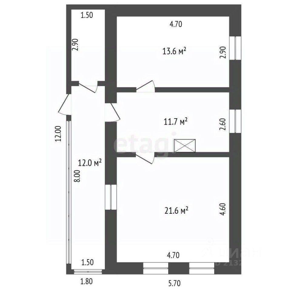 Площадь дома 63.3 кв.м, земельный участок - 12 соток.