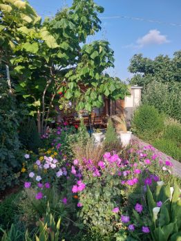 Продается благоустроенный жилой дом в с. Брянское Бахчисарайского р-на (Крым). Общая площадь дома 133,9 м² на земельном участке площадью 9 соток. В доме удобная планировка. С прихожей проходим в кухню-столовую, ванную комнату, котельную. В другую сторону расположены гостиная, 3 спальни, сан. узел. Прямо с прихожей выход во внутренний двор, рядом с выходом находится рабочий кабинет с отдельным входом для различных услуг (косметология, парикмахерская, репетиторство и т.д.). Коммуникации: электричество, водоснабжение, газ, отопление индивидуальное - газовое. Водоснабжение центральное. Своя скважина с запасными резервуарами, с автоматической системой полива. Придомовая территория обустроена и огорожена забором, навес для машины, ворота с автоматической системой. На территории благоустроенная беседка для отдыха, теплица, мастерская, большая сауна (парная, зона отдыха, зона барбекю). В конце участка выход к речке Альма, где бонусом расположен хоз. уголок (здание 24 кв.м.). Участок засажен фруктовыми деревьями, ягодными кустами. Участок благоухает различными видами цветов, которые цветут по сезону. До моря 18 км с. Песчаное (пляж песочно-галечный). На пляже развита развлекательная инфраструктура для детей и взрослых.