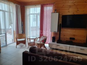 На первом этаже дома находится просторная кухня-гостинная, общей площадью 56 квадратных метров, встроенная мебель и техника, гостевой санузел, прихожая и личный кабинет с санузлом.
