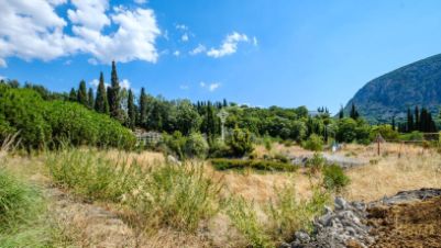 Участок граничит с природной зелёной зоной и виноградниками, что обеспечивает тишину, чистый воздух и особую атмосферу.