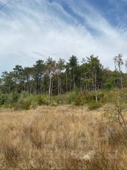 Участок ровный, расположен вдоль асфальтированной дороги граничит с хвойным лесом. На участке высажен персиковый сад.