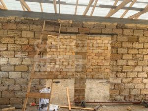Строится из камня ракушка, крыша металл, вода насосная станция, теплый пол, пол стяжка под плитку или ламинат, стены под обои, с/у штукатурка под плитку, потолок утепление пенопласт, электрика разводка по дому, фасад - полифасад, канализация - яма.