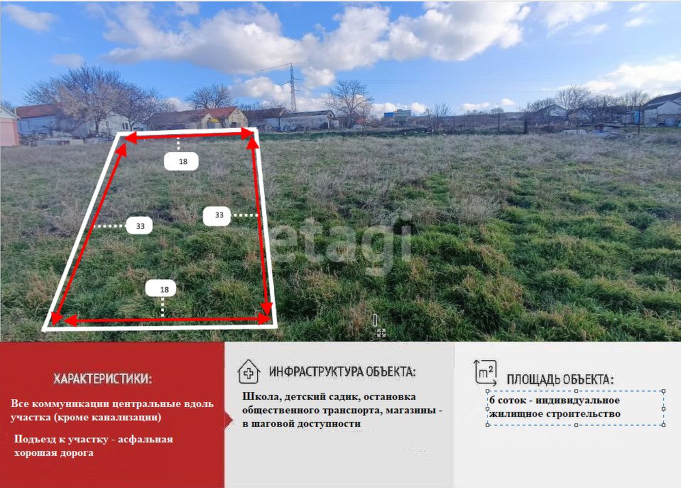 В продаже участок, для индивидуального жилищного строительства (ИЖС), площадью 6 соток. Участок ровный, с правильной формой и готов к застройке.