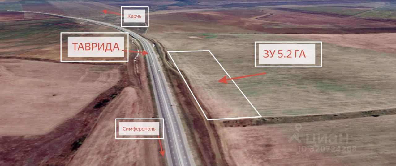 В процессе получения технических условий (ТУ) на съезд с трассы "Таврида" отличная возможность для коммерческого использования (АЗС, СТО, склад, придорожный сервис и др.).