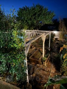 - Большая беседка с мангальной зоной с качелей, и зеленой зоной газона.