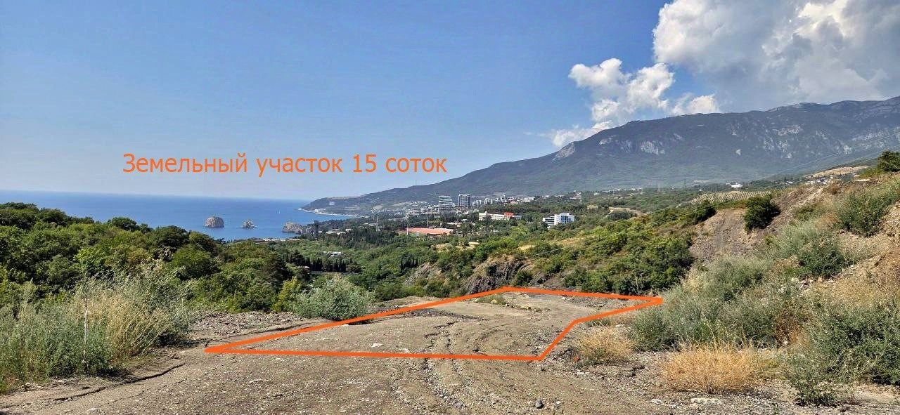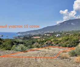 Продается земельный участок площадью 15 соток с шикарным видом на море, Аю-Даг и Ялтинскую яйлу.