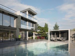 - Площадь: 560 м² (жилая) + 100 м² (крытый паркинг) + 40 м² (беседка) + 40 м² (зона отдыха у бассейна).