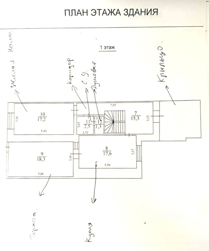 Дуплекс 2023 года постройки, в 3-уровня, общей площадью 105 м2, жилая 80 м2, цоколь 83,2 м2, три комнаты ( 17,2 м2/17,6 м2/17.2 м2), 3 с/у совмещённых (3,8 м2/ 3,8 м2/3,9 м2), коридор (15,3 м2/ 11 м2), кухня - с выходом на террасу 17,6 м2, терраса с видом во двор 18,3 м2.