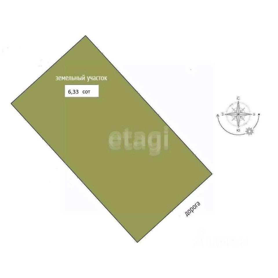Участок ровный, прямоугольной формы площадью 6,33 соток.