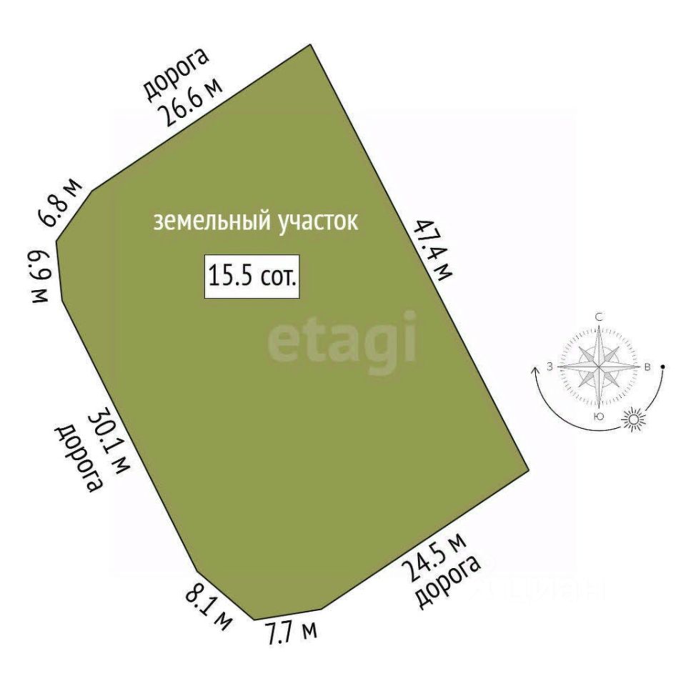Преимущества участка в том, что он достаточно большой и при этом хорошей, правильной формы.