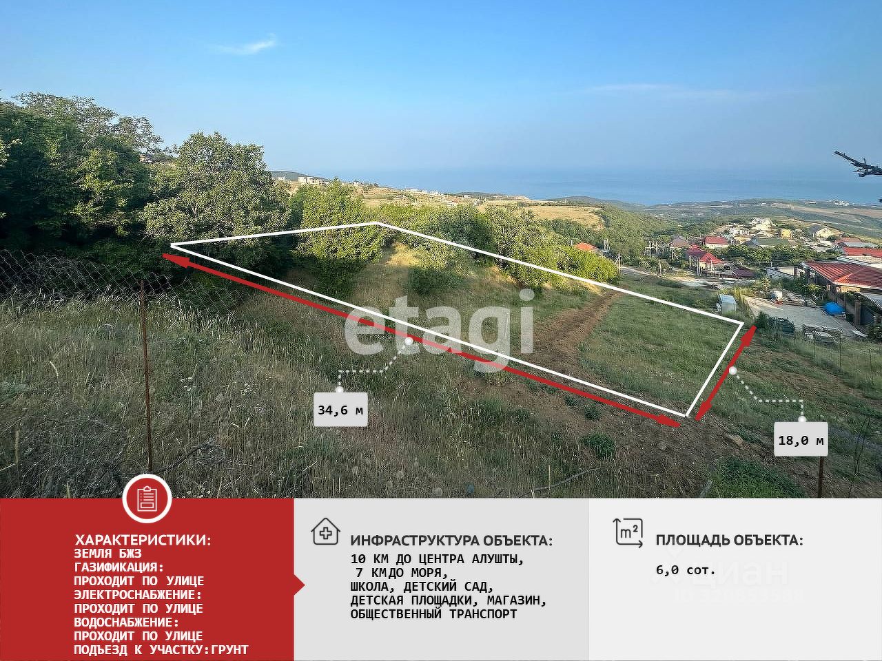 Предлагается к продаже земельный участок 6 соток с панорамным видом в c.Лучистое. Есть возможность объединить смежные участки и увеличить площадь.