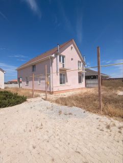 Дом двухэтажный, свежей постройки, из современных качественных материалов. Необходимы лишь незначительные вложения, чоб завершить косметический ремонт. На первом этаже вместительная прихожая 19,9 квадратных метра, из которой можно попасть в большую кухню-гостиную. Совмещенный санузел и техническое помещение. Просторная терраса. На втором этаже, куда ведет широкая деревянная лестница, расположены четыре широкие светлые комнаты площадью 25,6, 15, 12,5 и 13,7 квадратных метра, из окна комнат открывается живописный вид на город и выход на балкончики. Также на втором этаже имеется совмещенный санузел с ванной. И уютная лоджия. Железобетонный фундамент, стены кирпича и ракушечника, утеплены пенофлексом, оштукатурены, перекрытие железобетонные плиты. В доме есть все коммуникации: электричество, заведен газ, есть бойлер, газовый котел, кондиционеры, теплые полы по всему первому этажу. Водоснабжение скважина. Во дворе располагается двухэтажный гостевой домик - на первом этаже баня. Второй этаж с отдельным входом по лестнице - комната отдыха, сейчас там располагается бильярдная. Все коммуникации так же имеются. Вся техника, оборудование в рабочем состоянии, ранее никто не проживал.