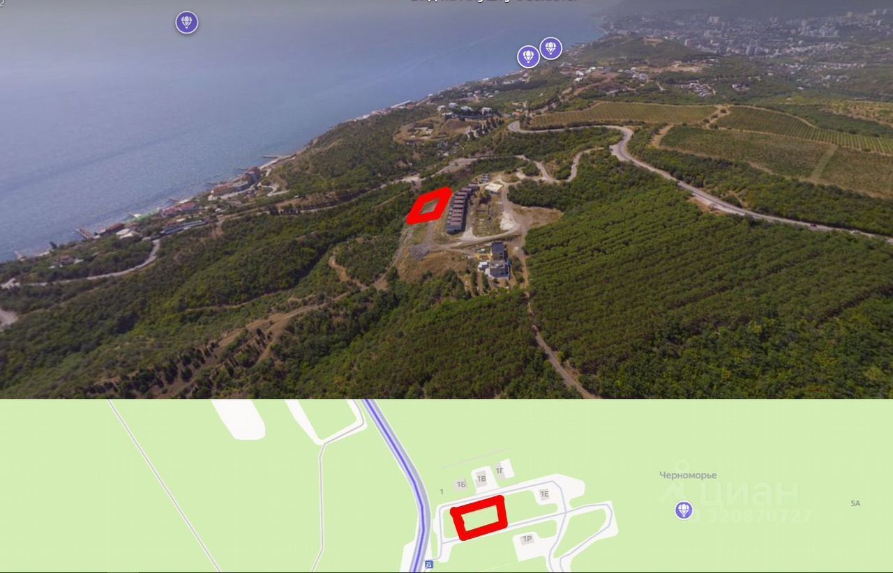 • Участок с панорамным видом на горы, море, в окружении зелени.