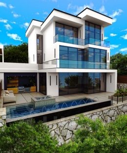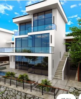 Продается новый трехэтажный дом площадью 220 м2, расположенный на земельном участке площадью 3,3 сотки по Симферопольскому шоссе, выше Южнобережного шоссе в пгт. Восход, г.Ялта. С участка открывается неперекрываемый вид на Черное море, виноградники, горы.