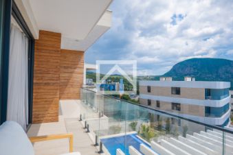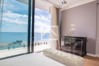 Фасадное остекление всех этажей и помещений выполнено с использованием алюминиевых раздвижных систем и современных мультифункциональных стеклопакетов. Прозрачные ограждения террас и балконов из закалённого стекла придают архитектуре лёгкость и утончённость.