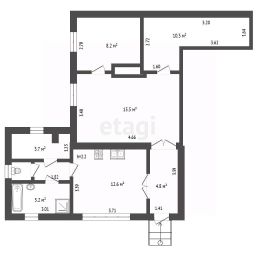 В доме расположены: три изолированные комнаты, зал, кухня, санузел (совмещённый).