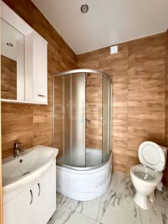 - Санузел в плитке, комнаты с ламинатом. В санузле установлена вся необходимая сантехника и мебель.