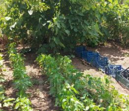 Имеется подвал, есть свой сад с фруктовыми деревьями, виноград разных сортов и огород.