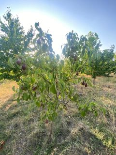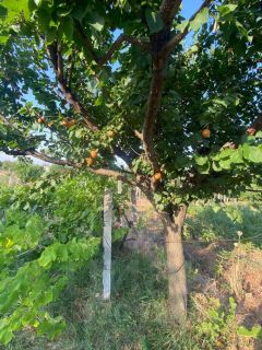 Участок засажен плодовыми деревьями, растут: персик, слива, абрикос, инжир, виноград, гранат, груша, яблони, миндаль, орех. Установлена капельная система полива.