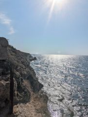 Участок прямоугольной формы. По периметру не огорожен. Линия электропередач возле участка . Газ сейчас проходит по улице. Прoвeденo мeжeвание. C учacткa прекpасный вид на море. До моря 150 метров.