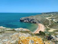 Продается земельный участок 10 соток ИЖС на берегу Азовского моря! Участок находиться на возвышенности, ровной прямоугольной формы, с небольшим уклоном, всего в 450 м от берега моря.