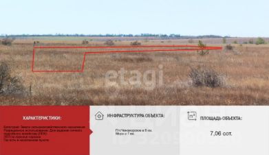 Земельный участок площадью 7,06 соток расположен в 6 км от курортного поселка Черноморское, в живописной местности с удобной транспортной доступностью.