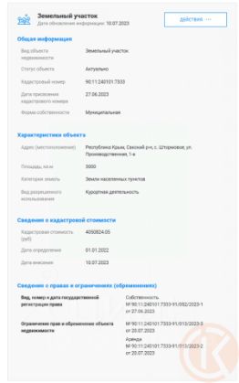 Основные параметры земельного участка с кадастровым номером 90:11:240101:7333:
