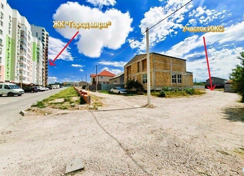 Ровный участок правильной формы, идеально подходящий для индивидуального жилищного строительства, расположен на второй линии от современного ЖК "Город мира". По его границе проходят электричество и газ; центральный водопровод запланирован. На данный момент водоснабжение обеспечивается индивидуальными скважинами. С двух сторон участок огорожен забором. Дорога по улице отсыпана щебнем. Вокруг живут и строятся соседи.