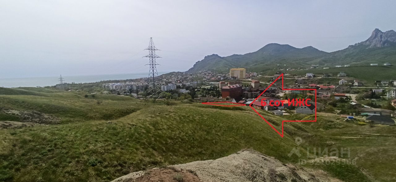 Видовой участок 6 сот в Коктебеле на ул. Аксенова. ИЖС. С участка открывается вид на море, панорамный вид на Коктебельскую долину и горные вершины Кара-дага - легендарный заповедник у потухшего вулкана.