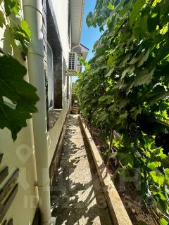 Дом имеет общую стену с соседом. Участок разделен дорожкой, можно поставить забор по своему вкусу, сосед согласен . По документам дом и участок в долевой собственности , доля 1/2. Все соседи - достойные люди. Рядом добротные дома и отели.