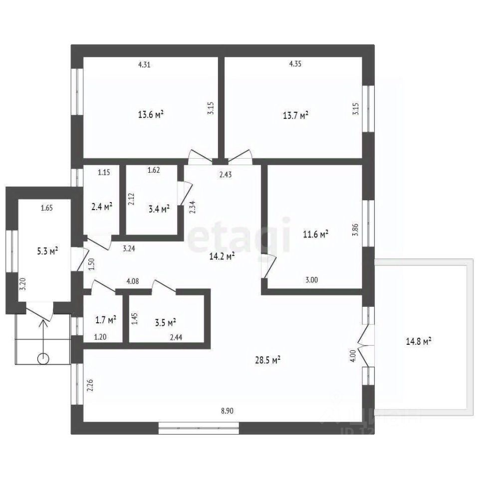 Планировка продумана для комфортного проживания: три изолированные комнаты, два санузла, практичная гардеробная и техническое помещение. Центральным элементом является объединенная кухня-гостиная с прямым выходом на собственную террасу, что идеально для приема гостей и отдыха на частной территории. Просторный коридор эффективно зонирует пространство. Участок обладает потенциалом для организации парковки, зоны барбекю или ландшафтного дизайна. Это предложение представляет собой оптимальный баланс между инвестицией в качественную недвижимость и приобретением дома для жизни в гармонии с природой без ущерба для городского комфорта.