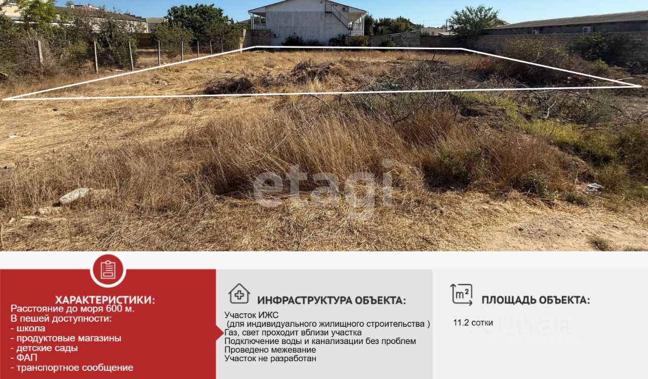 Земельный участок 11.2 соток в 600 метров от моря, с прекрасными песчаными пляжами. Находится в районе пгт.Заозерное, Песчанка.